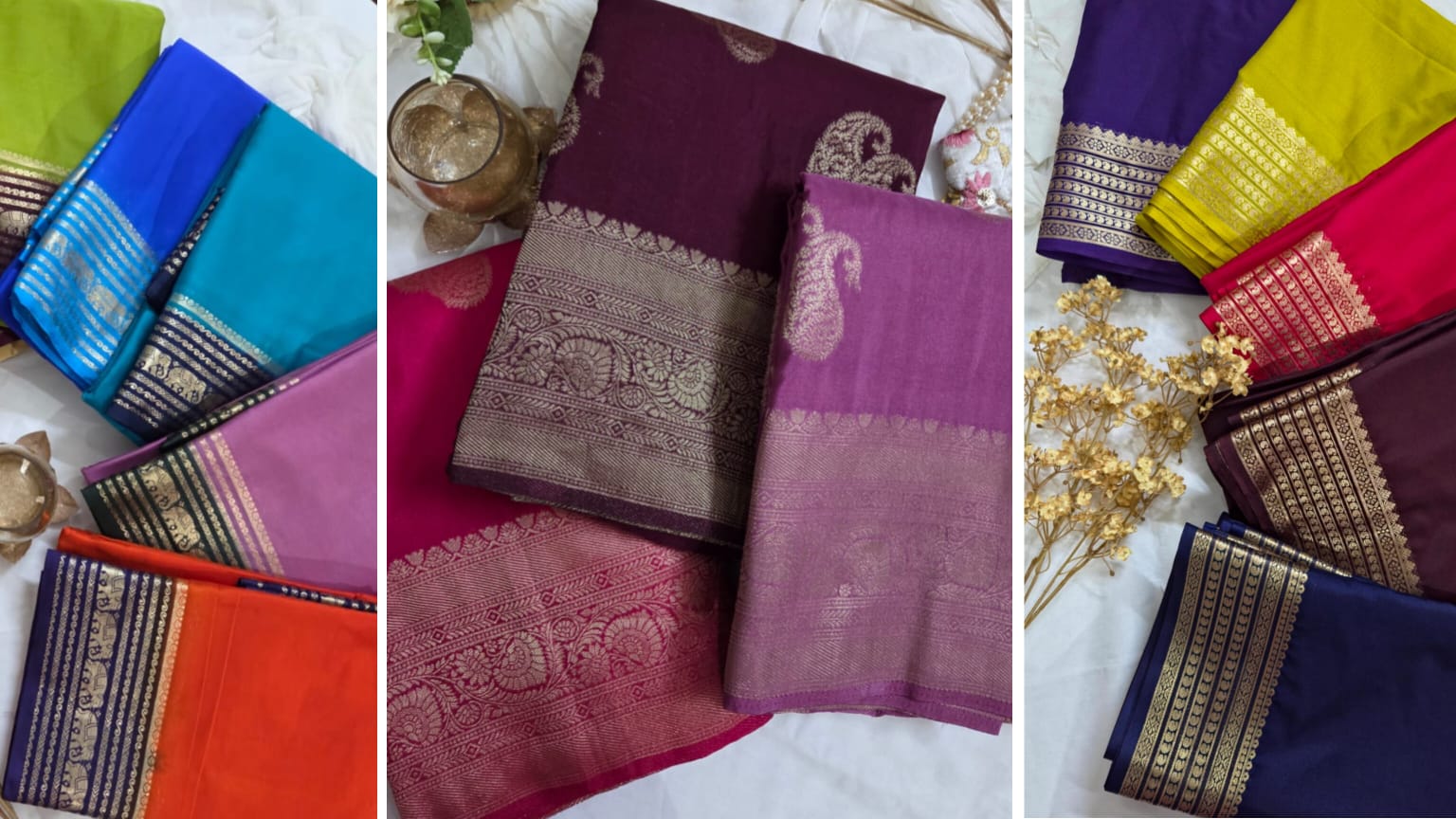 Royal Mysore crepe saree| The heritage weave | Semi Mysore crepe| with Bentex Zari Border